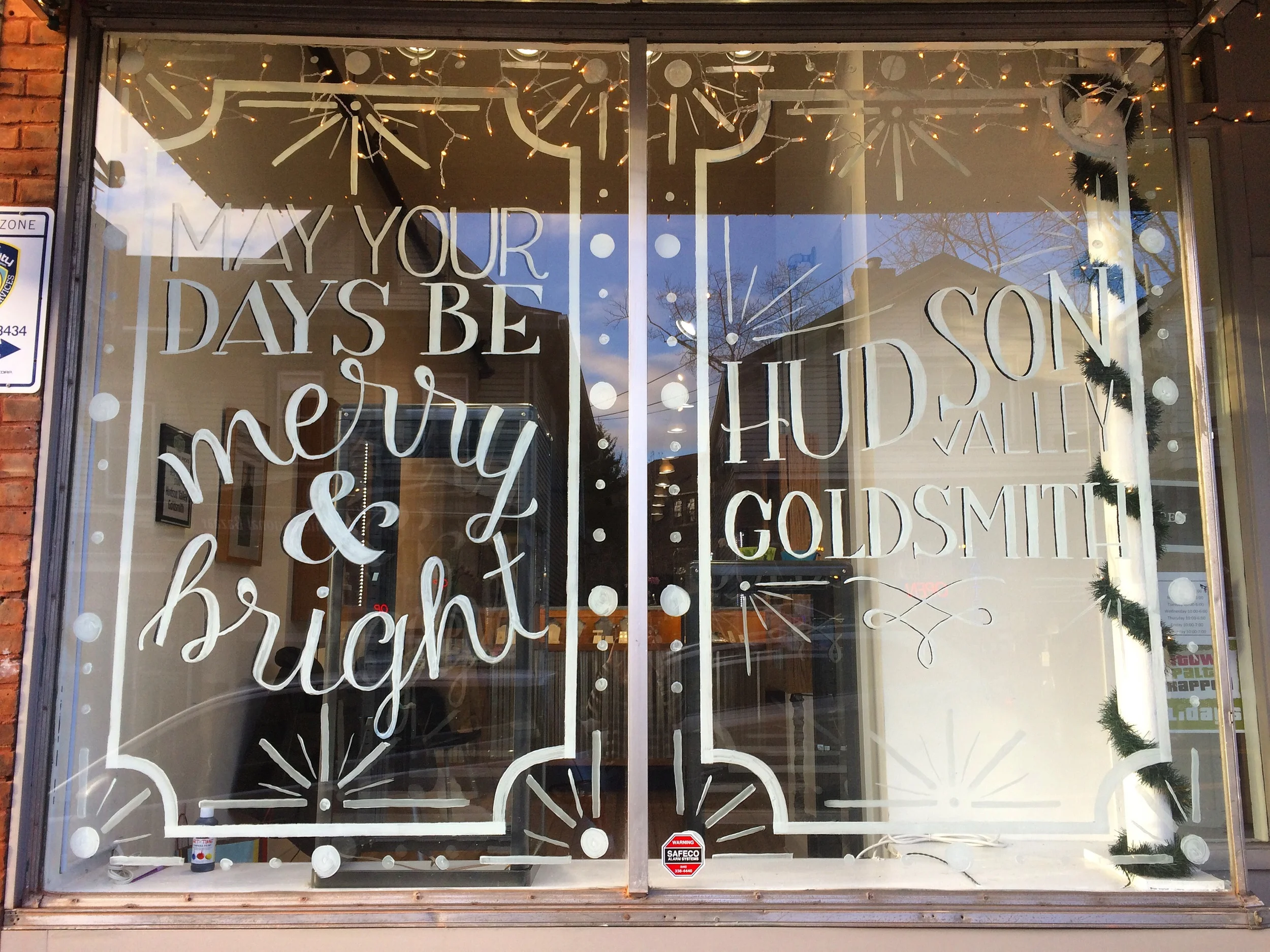 I was commissioned to make a holiday window design for the Hudson Valley Goldsmith, located in New Paltz, New York. The business prides themselves on custom hand-made fine jewelry and wanted a window display that gave a warm, welcoming, hand-made vibe.